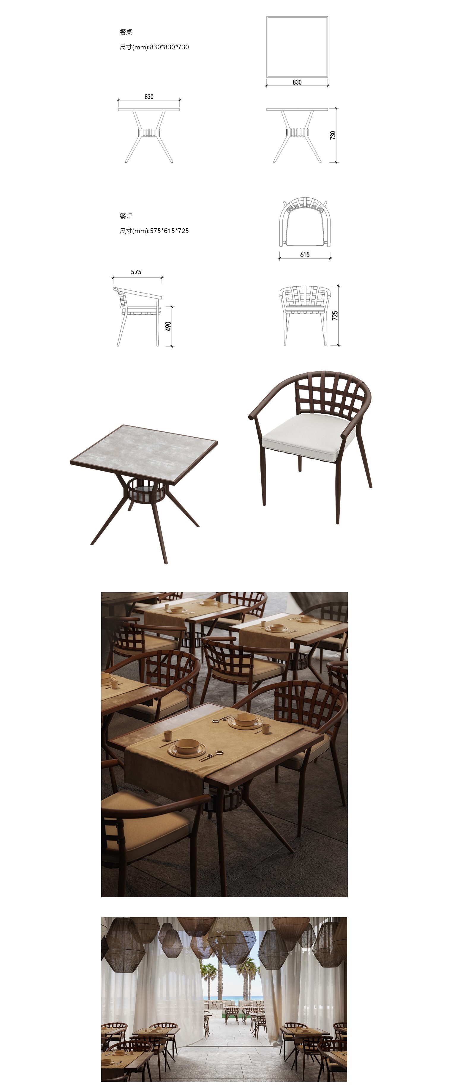 尺寸(mm):餐桌:830*830*730/餐椅:576*615*725