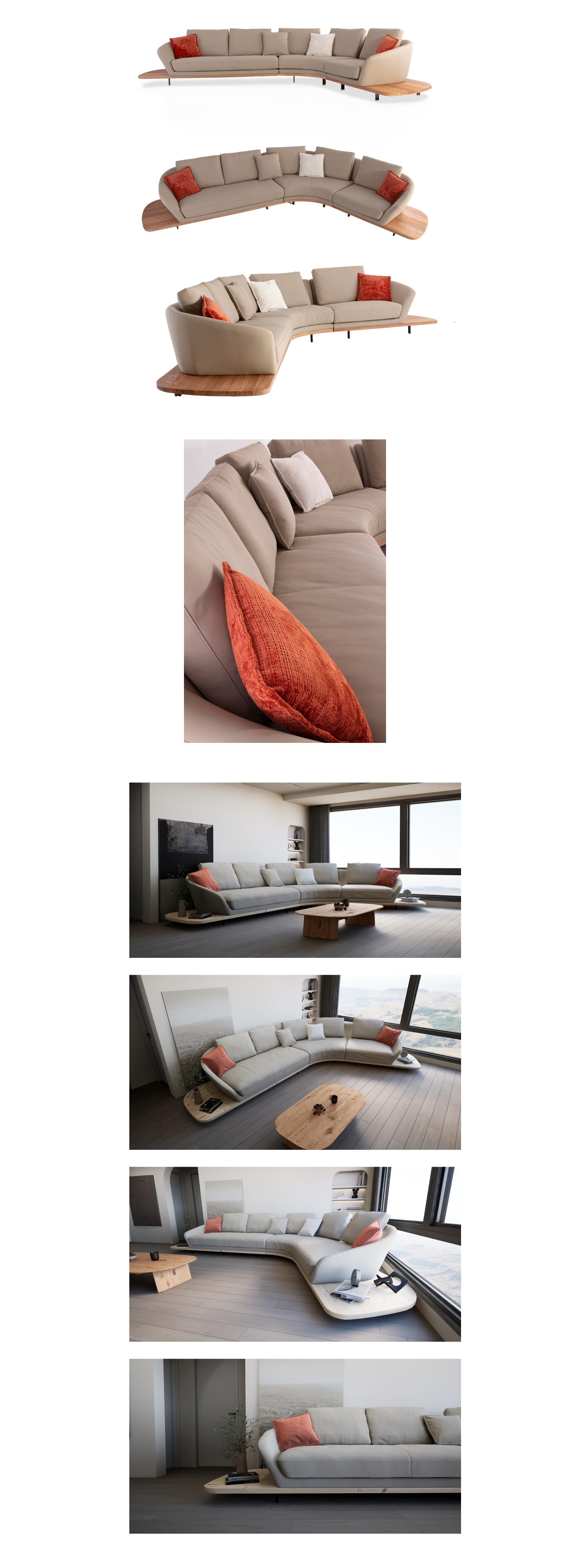 Aulo 是一張帶有建築語彙的沙發,它以優雅的弧線環抱空間,如同一段靜靜流動的氣流,在室內輕柔展開。