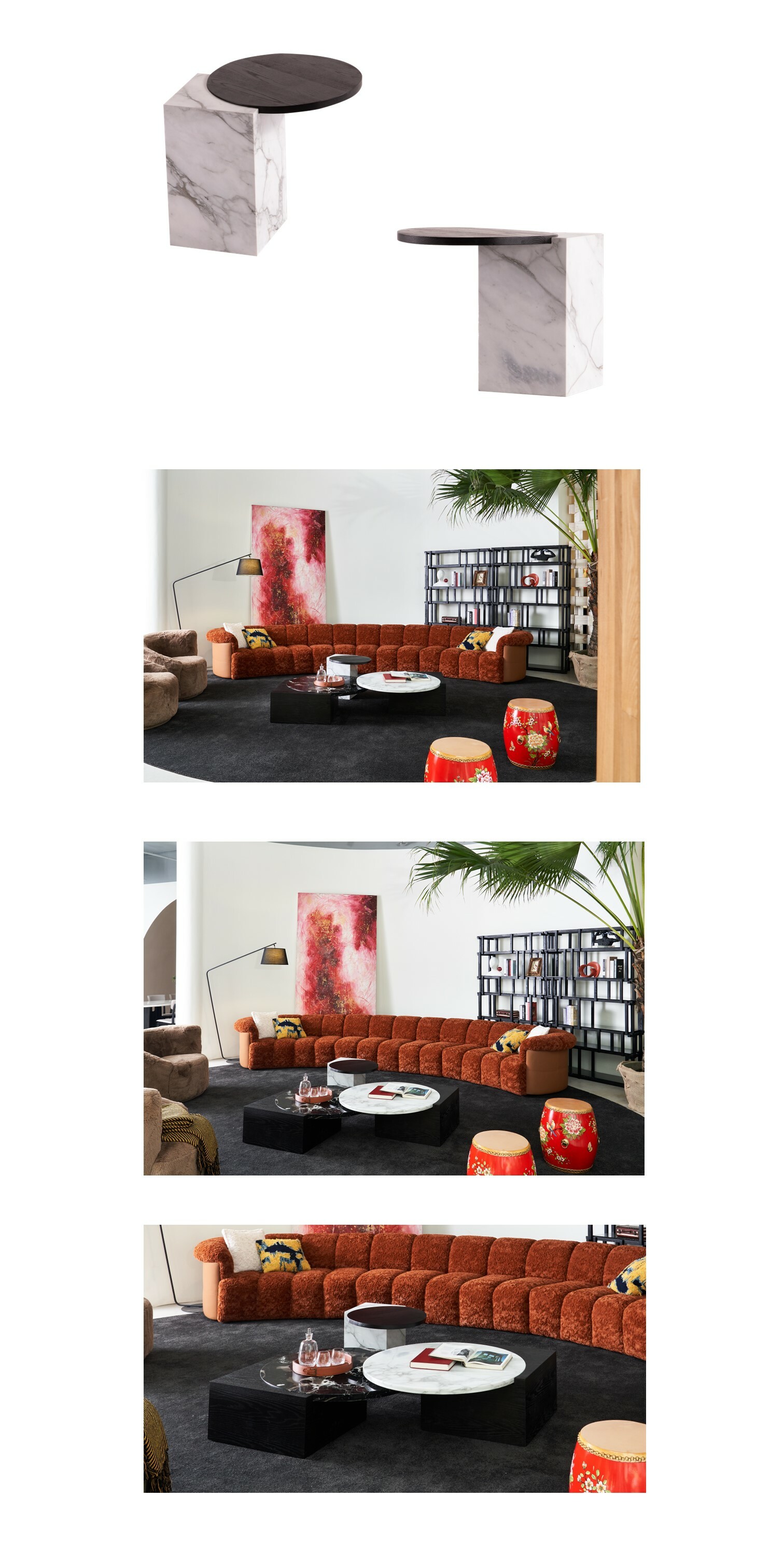 這組家具以不對稱的結構勾勒出動態的線條,使其能夠獨立使用,亦能巧妙拼接,根據不同場景變化,塑造專屬於你的理想空間。