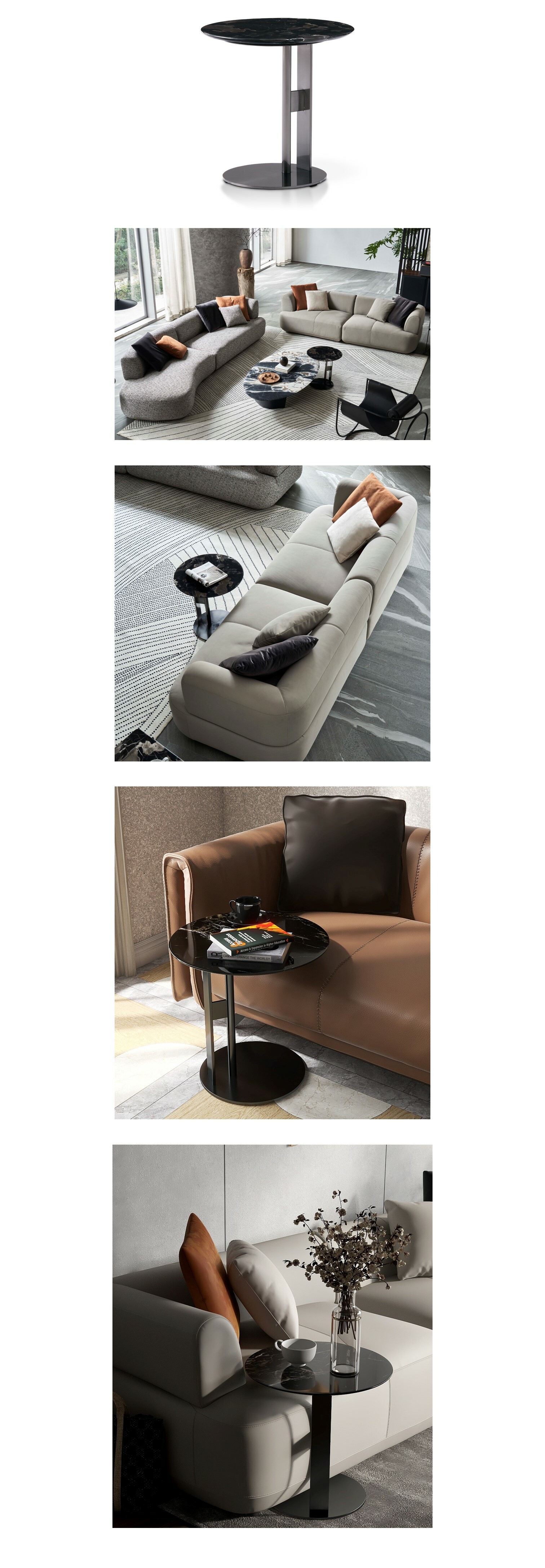 圓形的天然石桌面每一處紋理都訴說著大自然的故事,光滑且富有質感,展現出自然界的粗獷與精緻。