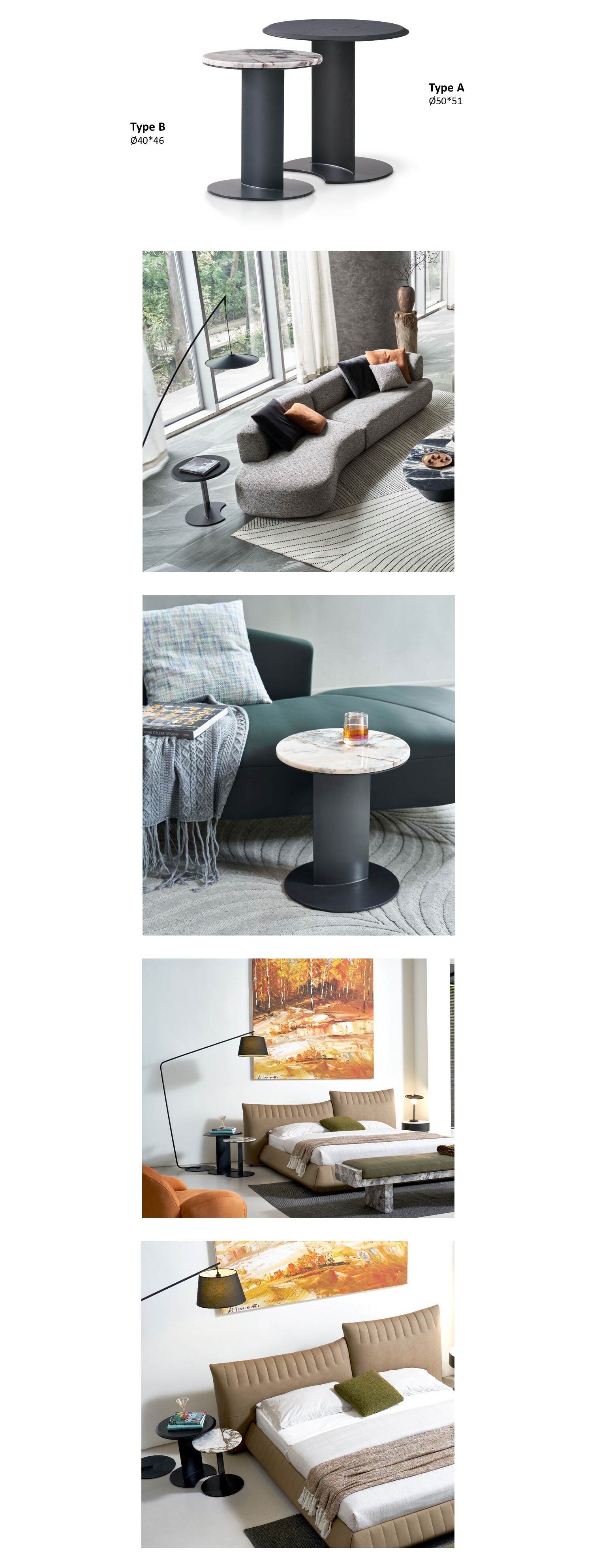 底座設計獨具巧思一張圓形,一張圓形缺角,形成動態呼應,既能獨立使用,也能靈活組合,適應不同空間需求。