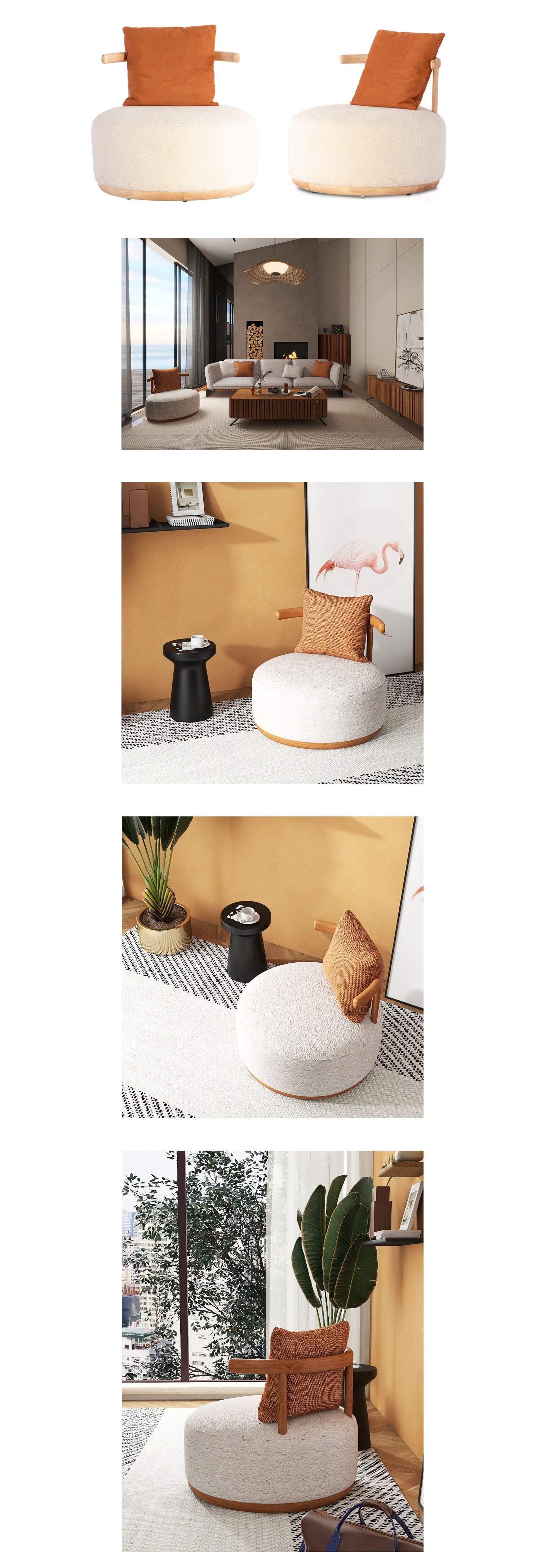 Nuve 休閒椅以圓潤飽滿的坐墊為設計核心,搭配簡練的木質扶手,構築出一種兼容溫潤與現代的輕奢感。
