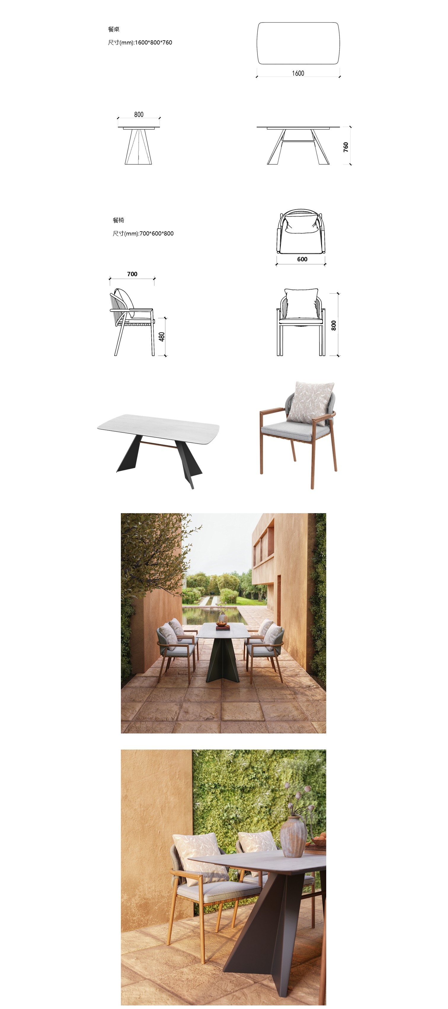 尺寸(mm):餐桌:1600*800*760/餐椅:700*600*800