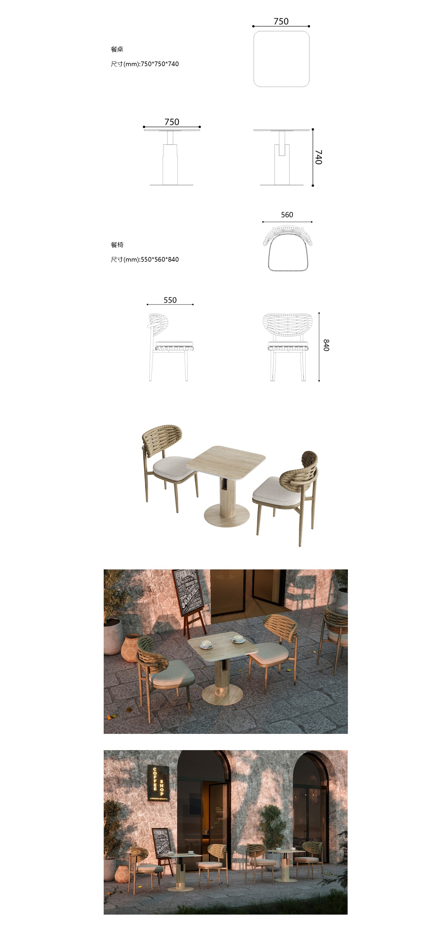尺寸(mm):餐桌:750*750*740/餐椅:550*540*840