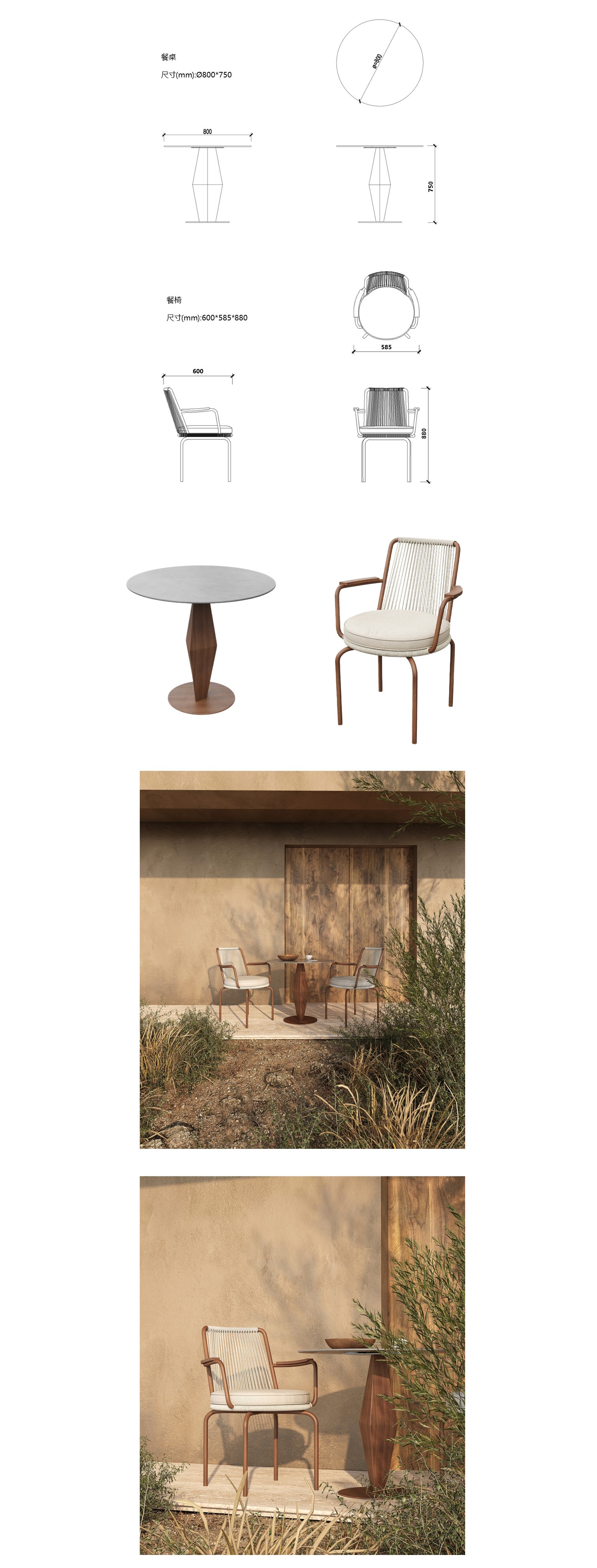 尺寸(mm):餐桌:Ø800*750/餐椅:600*585*880