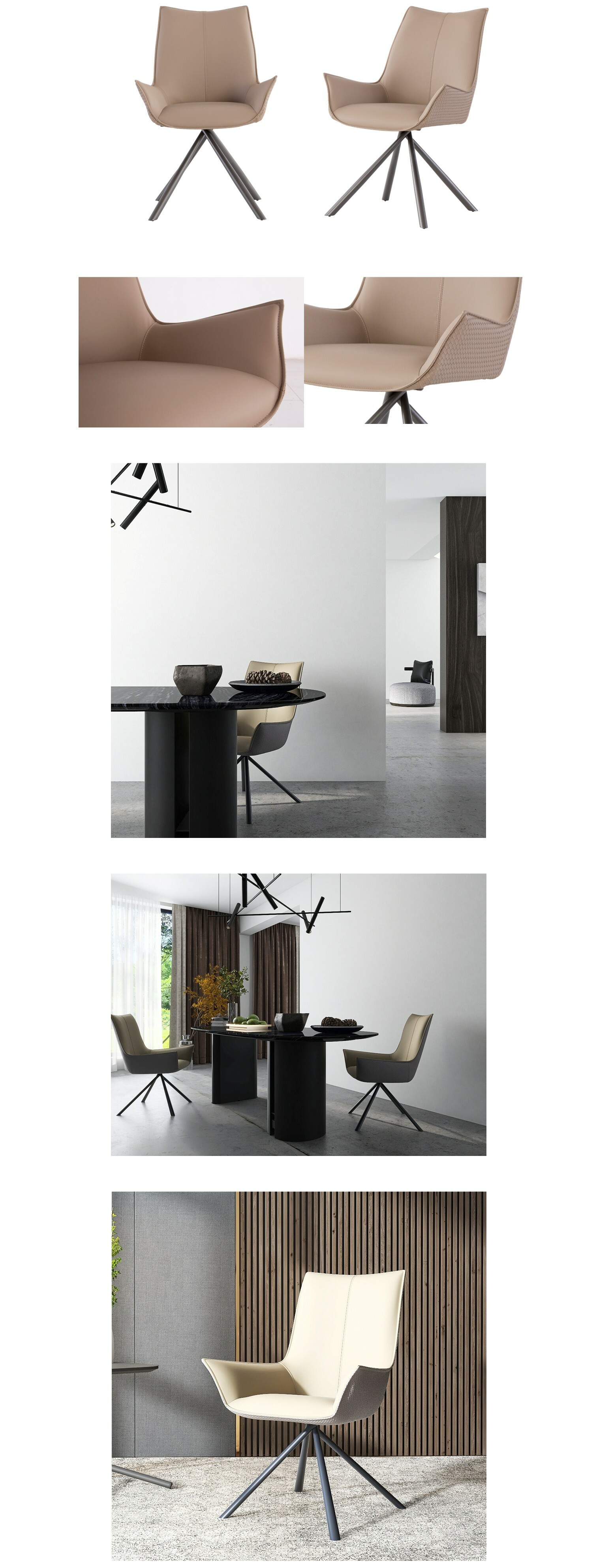 獨特的放射狀金屬椅腳不僅提升穩定性,更賦予整體造型前衛而不失平衡的張力。