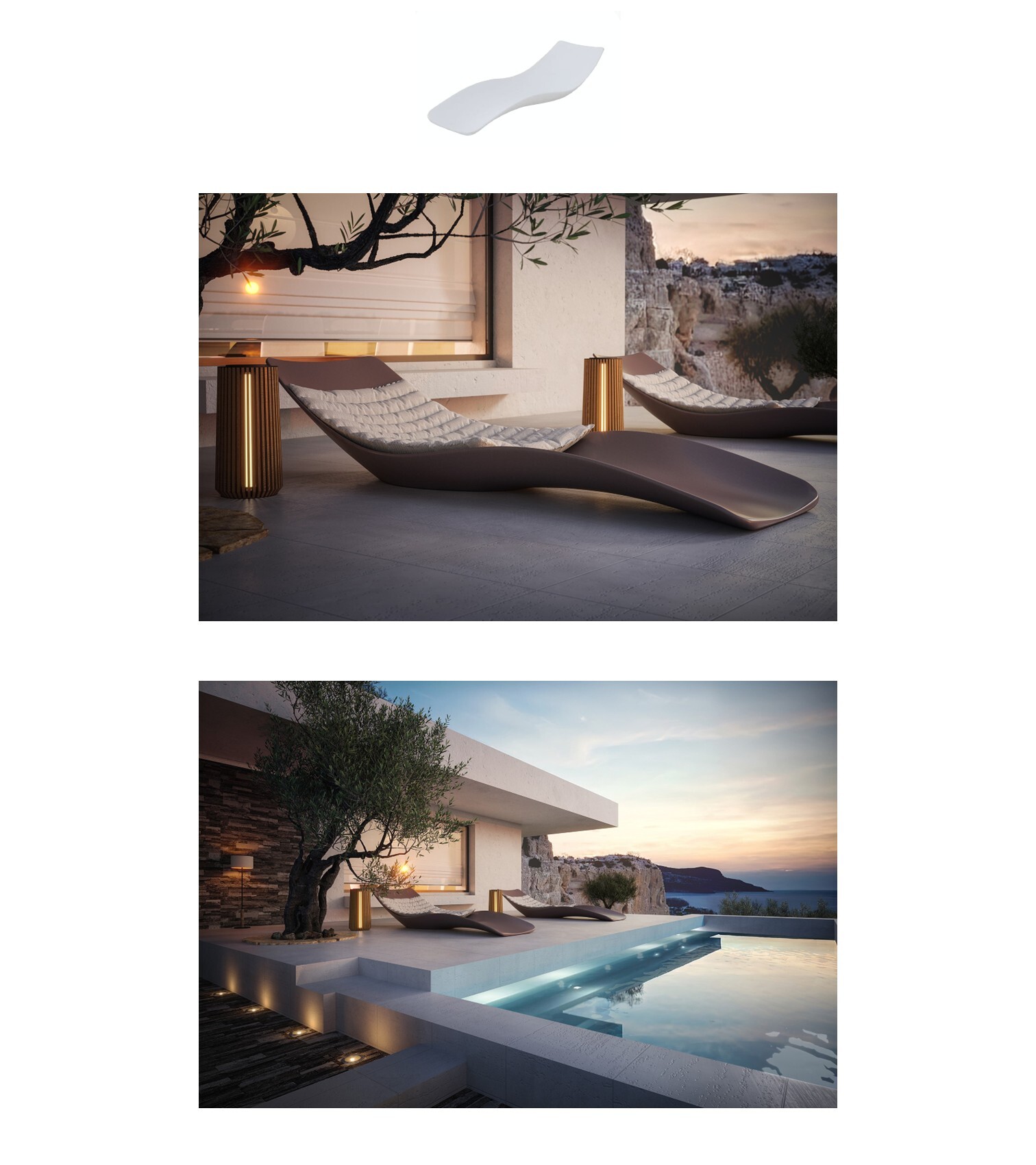 它捨棄繁複的結構,轉而以純粹的線條與比例,讓身體自然融入其中,彷彿躺在一片輕柔的浪波上,緩緩擺盪於寧靜與沉思之間。